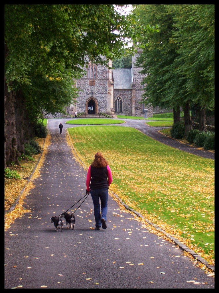 Taken many years ago, this is a picture of Jude and the wee dogs walking in the direction of St Malachi’s, Hillsborough Parish Church. It hangs on my living room wall and has recently took on a whole new meaning of the journey we are all taking as believers to heaven. Notice the door open in the church, when the time comes we enter from time into eternity & into the presence of The LORD.