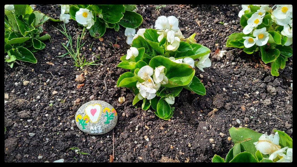 The final stone ended up in a beautiful flowerbed, central Logrono!