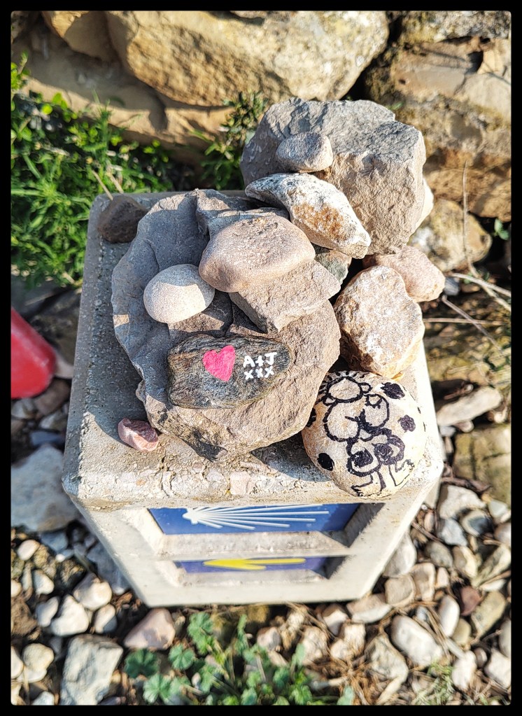 I had collected some flat stones from Glendalough and had an idea what I would do with them so I wrote on seven of them along with a final round stone for leaving along the journey. There was no shortage of stone mounds so in my own away, often away from my friends I took a moment each day stopped and reflected on Jude, thanking God for her life, knowing she was safe outside of an ever increasing chaotic & hostile world……. Maranatha…Come LORD Jesus come!