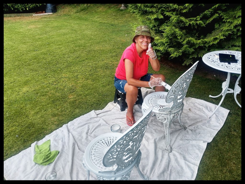 The following is my very last picture of Jude. Caught in the moment, painting the garden furniture, listening to music on her phone……….what a joy !